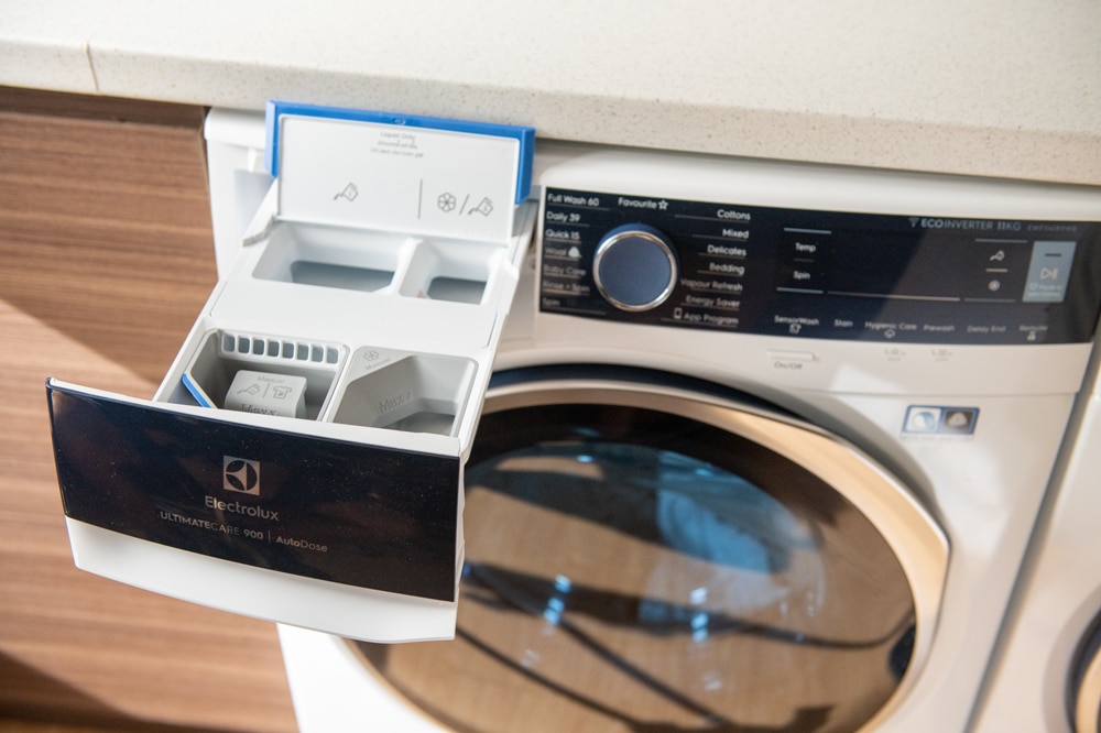 伊萊克斯UltraMix洗劑高效混合技術,能將水、洗滌劑和柔軟劑在進入滾筒之前,以獨家技術加以混合,避免洗劑殘留,呵護衣物的每一吋纖維,延長衣物壽命。